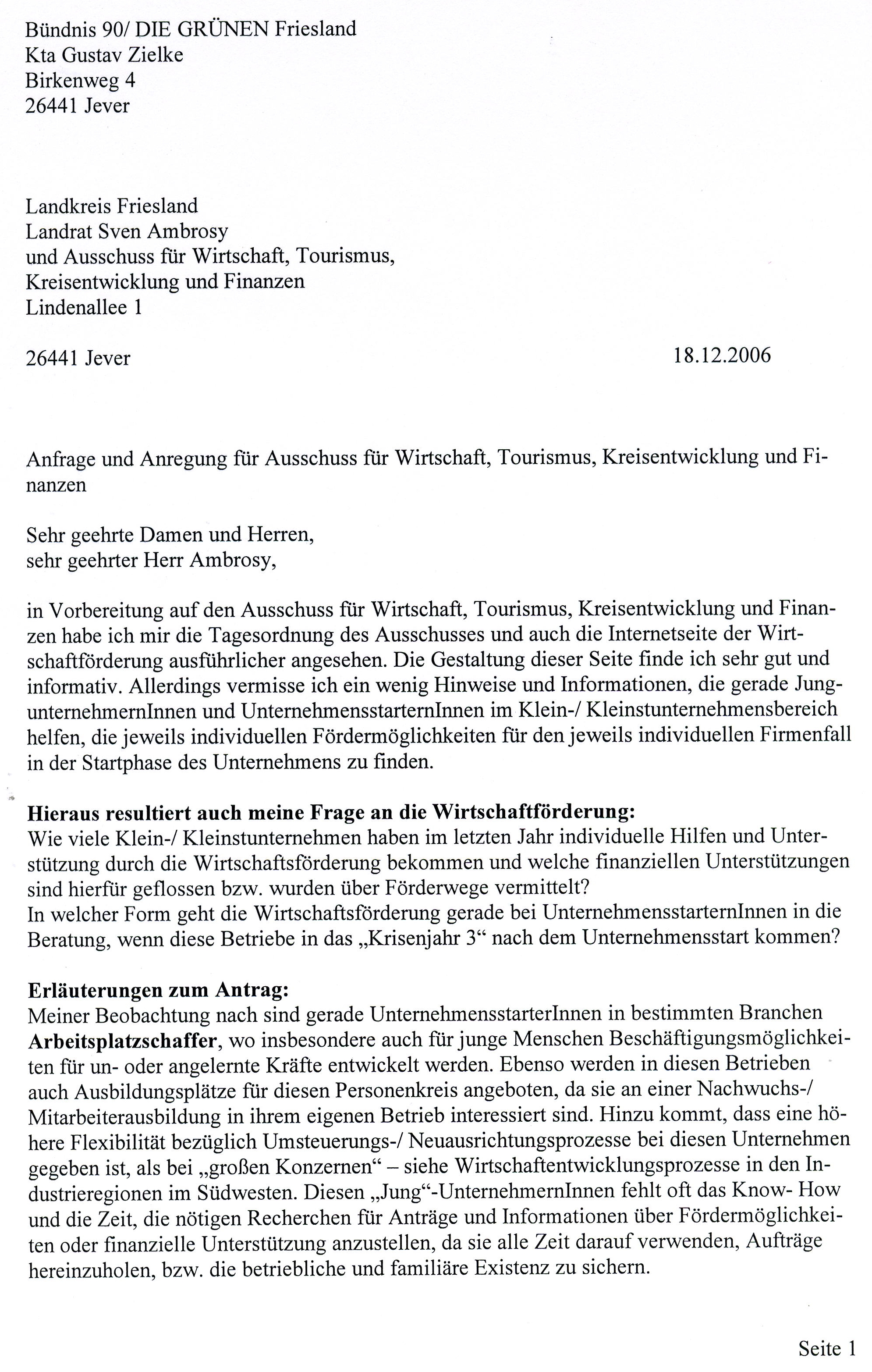 Antrag der Gemeinde Wangerland / Wangerland Touristik GmbH auf Gewährung eines Kreiszuschusses für die Herstellung einer touristischen Infrastruktur im Freizeitgelände nördlich des Erholungsgebietes Hohenkirchen - Bau einer Promenadenbrücke - Beschluss: einstimmig beschlossen | 081/2007 | |
